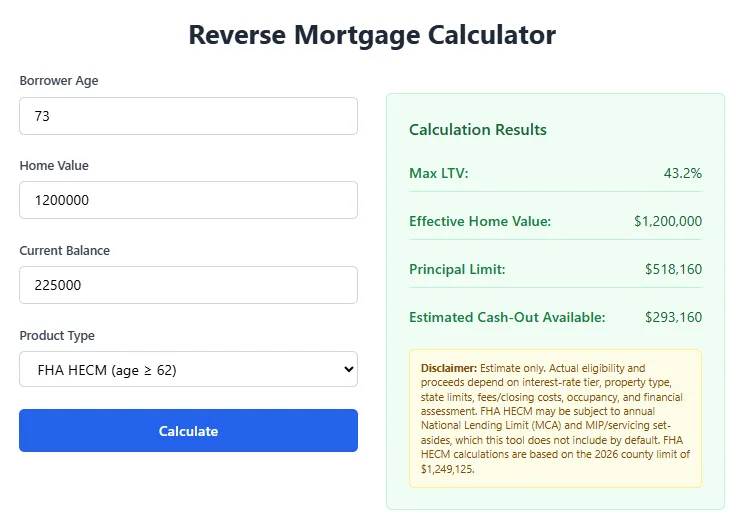 Get instant estimates based on your age, home value, and current mortgage. Takes 2 minutes. Completely private.